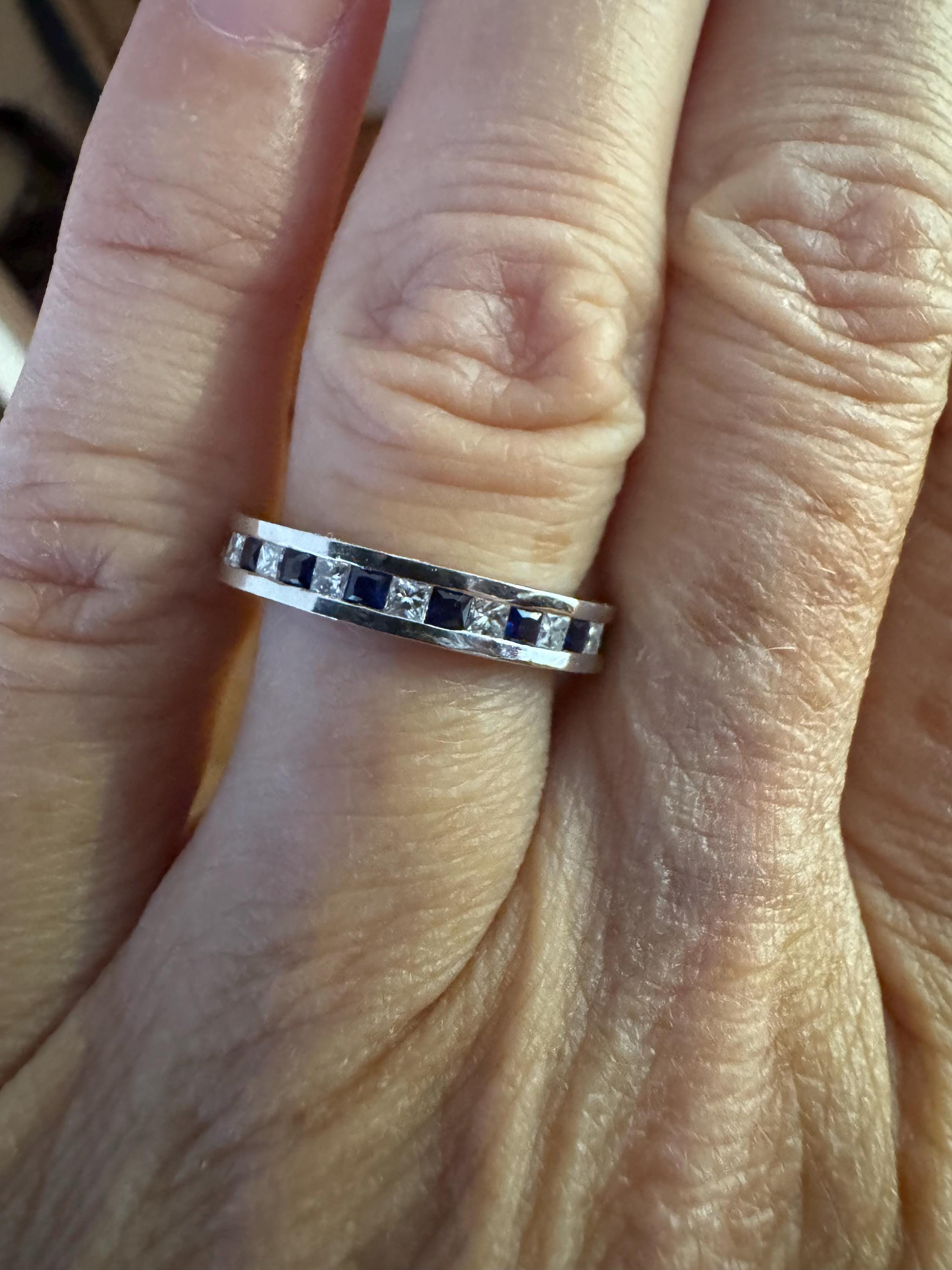 Luxurious Channel Set Diamond and Sapphire Band - Timeless Beauty for a Princess. Sparkling Princess Cut Diamond and Sapphire Band - Perfect for Wedding or Special Occasion