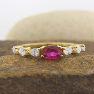 Lab Grown Pear Ruby Ring: 14k Gold Solitaire Engagement Ring